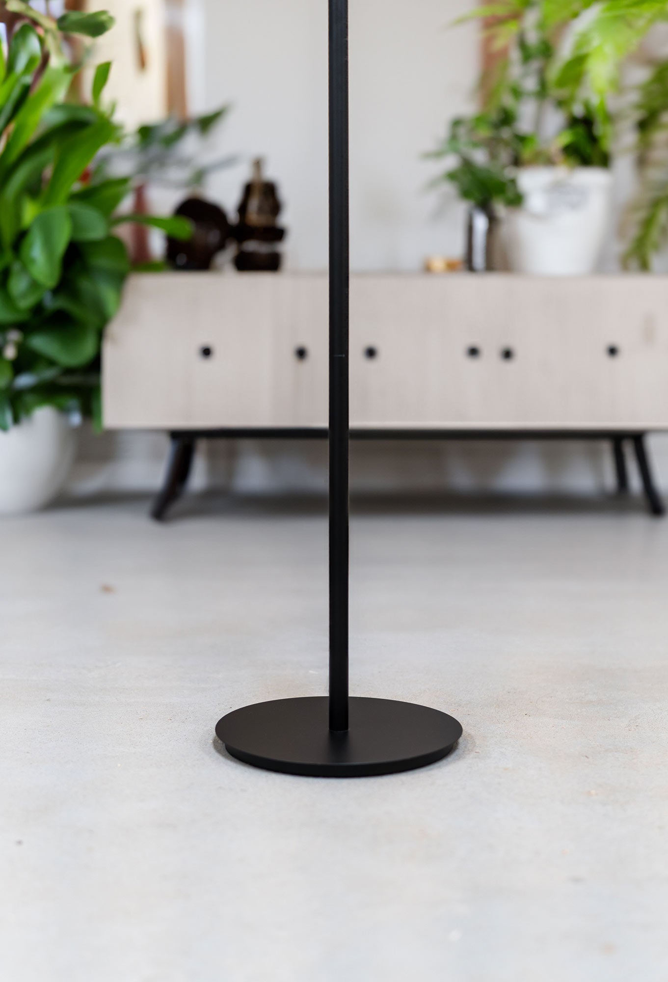 Der Gofurnit Stehlampenfuß besticht durch sein elegantes Design und seine hochwertige Verarbeitung. Gefertigt aus robustem Metall in elegantem Schwarz, sorgt die runde, schwere Bodenplatte mit 29 cm Durchmesser für einen stabilen Stand. Die dezente Kabelführung im Inneren des Lampenfußes schafft ein aufgeräumtes Erscheinungsbild. Dank seines schlanken und platzsparenden Designs fügt sich der Lampenfuß harmonisch in jede Umgebung ein. Perfekt kombiniert mit den runden Holzlampenschirmen von Gofurnit, bietet dieser Stehlampenfuß eine zeitlose Eleganz und passt ideal in Wohnzimmer, Schlafzimmer oder Büro.