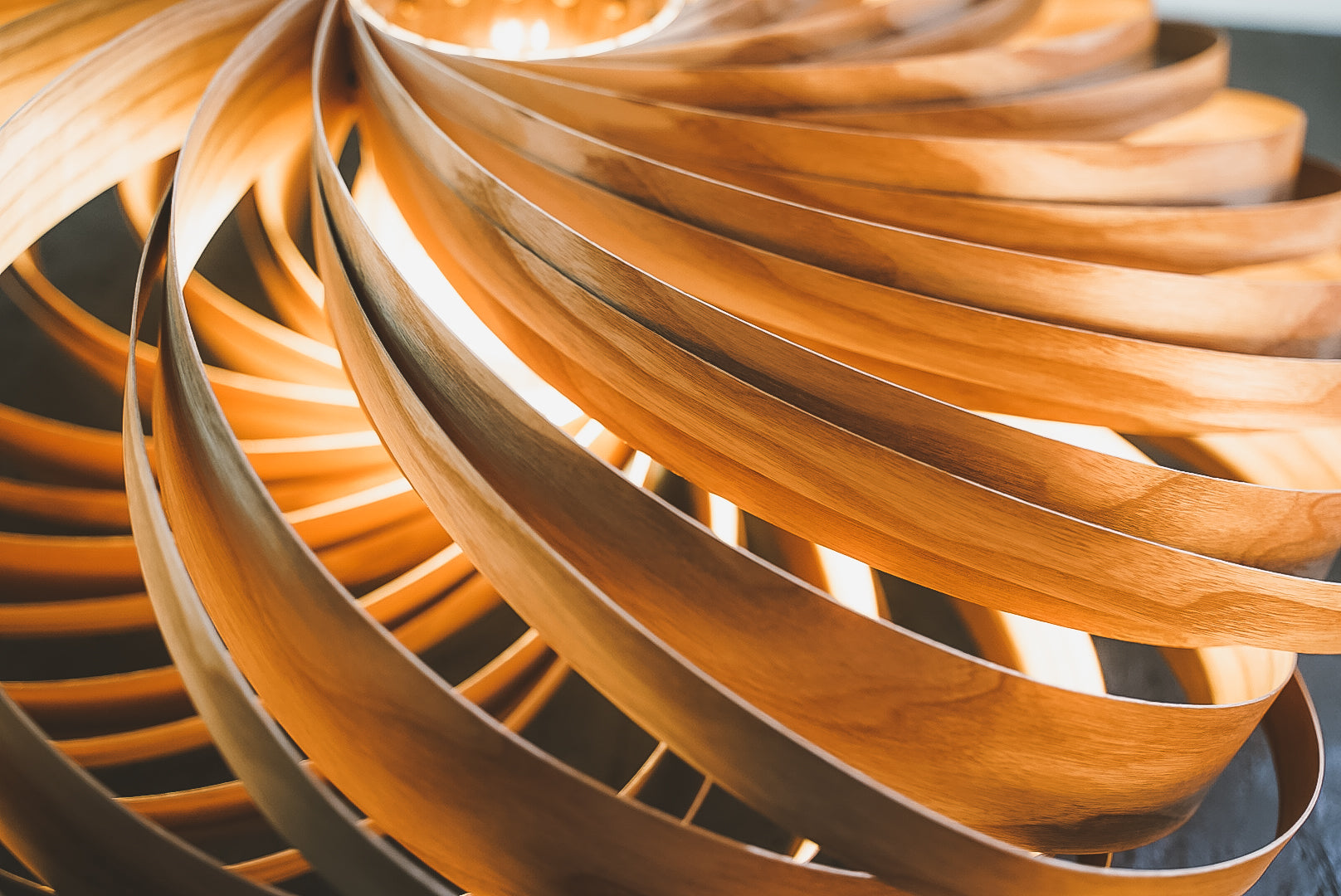 All our lamps are handcrafted with great care in our workshop in the heart of Cologne. Each individual wood veneer strip is carefully examined, selected, and then combined with matching veneer strips.