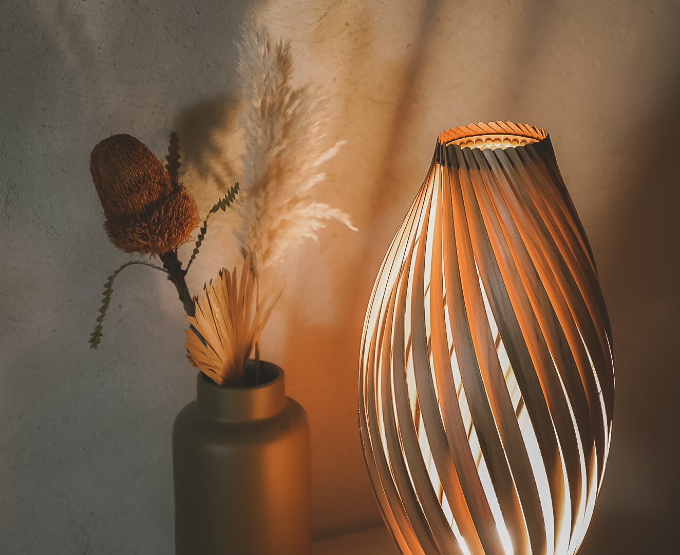 Every lamp is unique, even if they resemble each other in shape and design. Because by using naturally grown woods, each trunk has its own vibrant grain.
