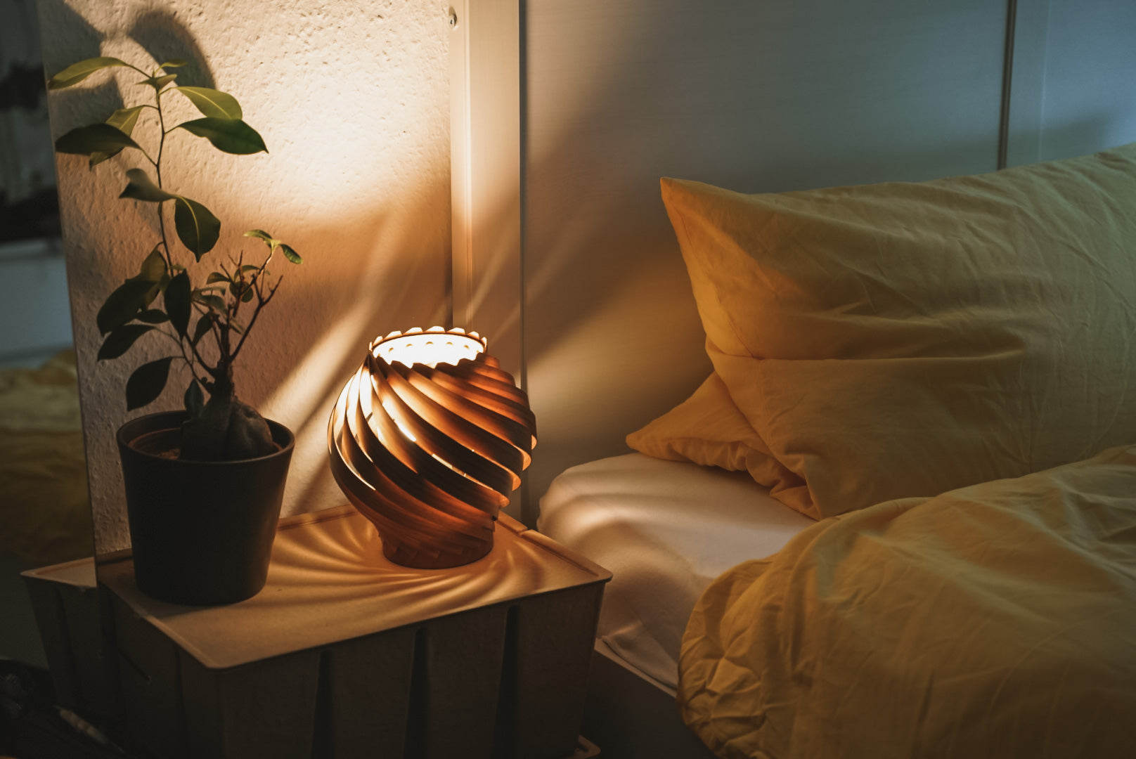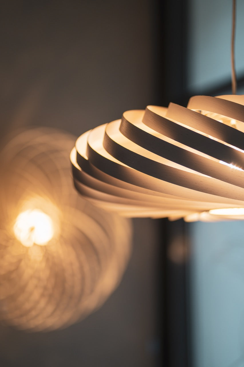 Das Holz, aus welchem wir unsere Leuchten bauen, ist enorm langlebig und sehr pflegeleicht. Das Holzfurnier wird von uns geölt und wird mit einem UV-Lack versiegelt, was verhindert, dass das Holz durch Sonneneinstrahlung bleicht. Durch die spiralförmig angeordneten Streifen hast du nicht mit Staubablagerungen zu kämpfen und das qualitativ hochwertige Holz mit sehr glatter Oberfläche benötigt keine besondere Pflege. Solltest du deine Leuchte doch einmal säubern wollen, empfiehlt sich ein einfacher Abstauber oder ein leicht feuchtes Tuch zum Abwischen.