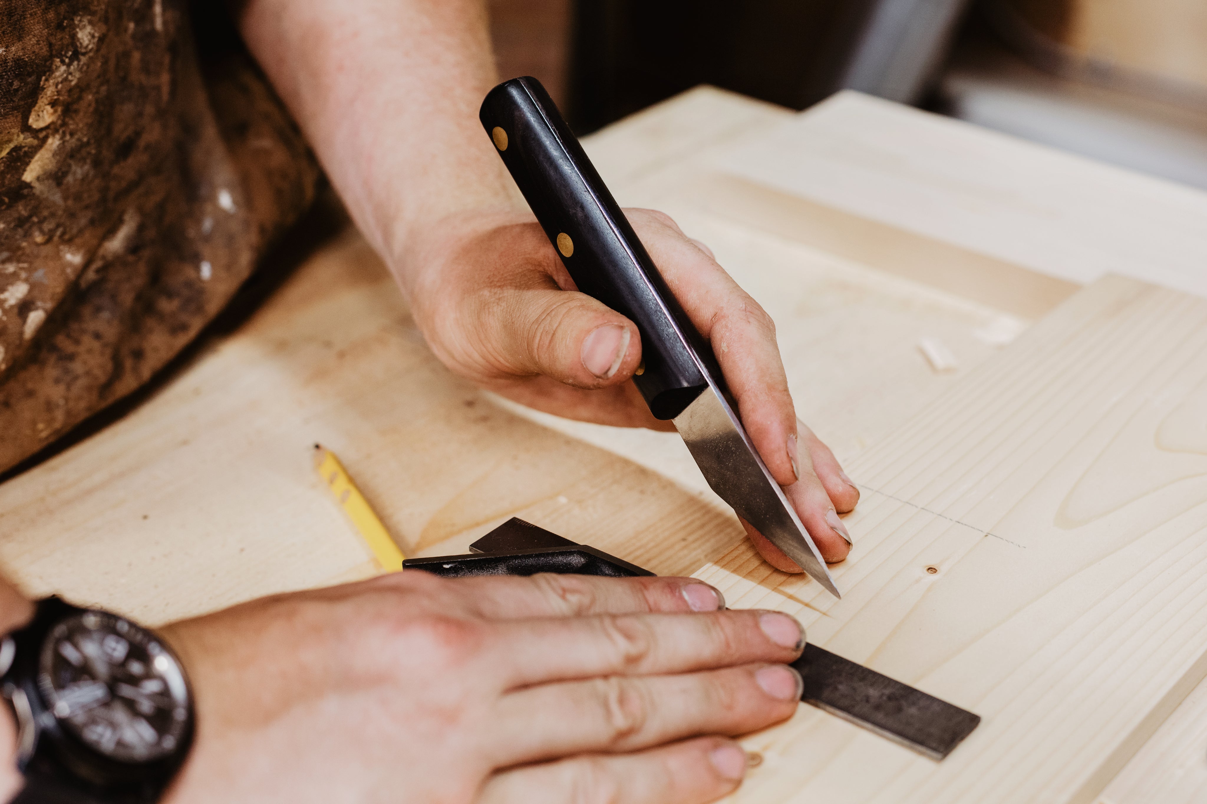 Aus den Verschnitten des Furniers stellen wir Obstschalen und Lesezeichen her.