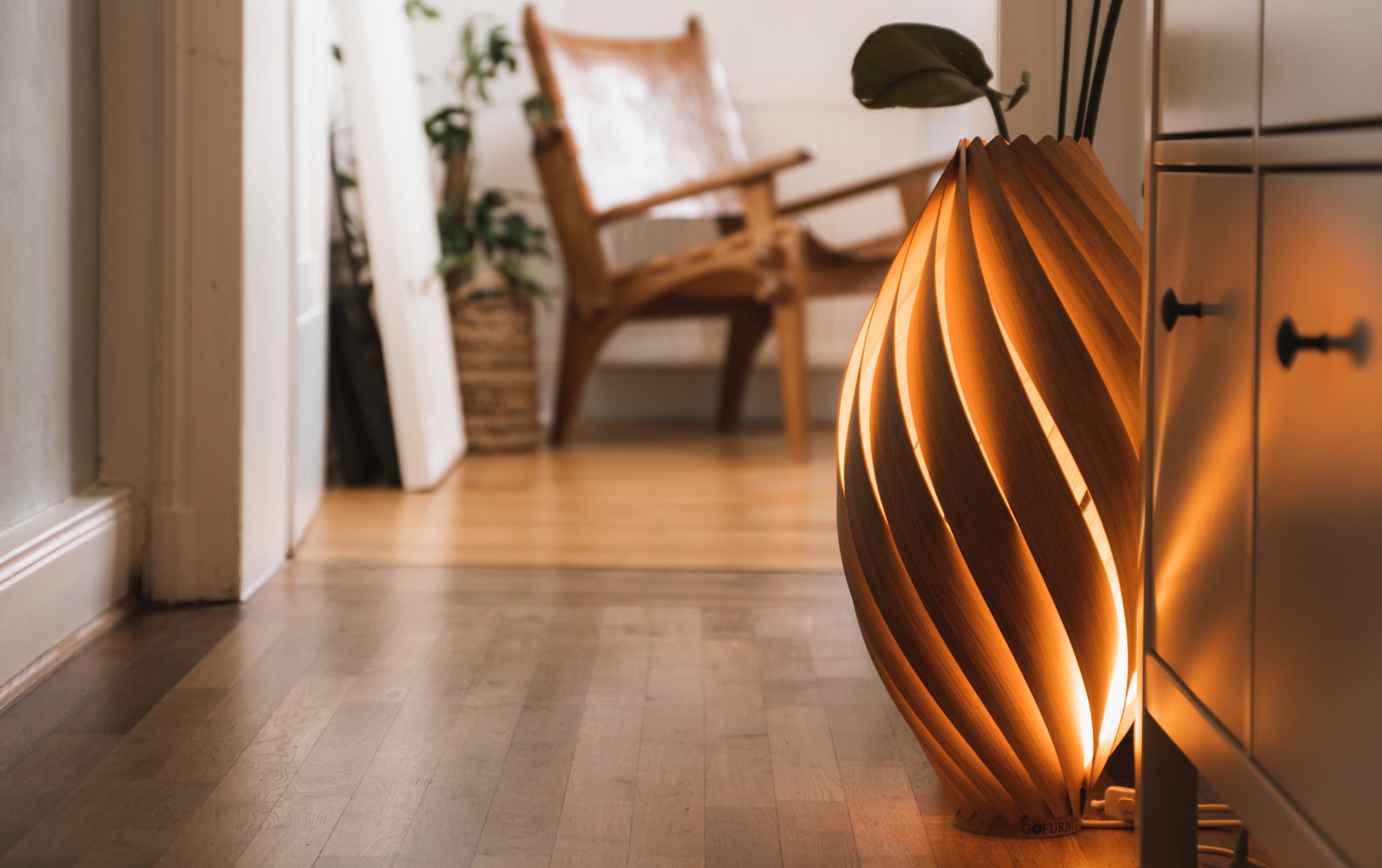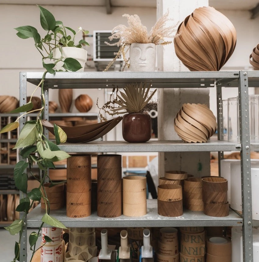 Handgefertigte Leuchten aus Holz, die in einer schnelllebigen Zeit zum Entspannen einladen.